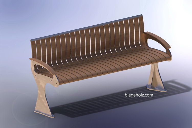 Aufgabenstellung: Parkbank, welche witterungsbeständig, nahezu pflegefrei (kein Abschleifen/nachstreichen), Seniorengerecht, modernes & urbanes DesignMaterial: gebeizter Edelstahl & KHPH in Buche