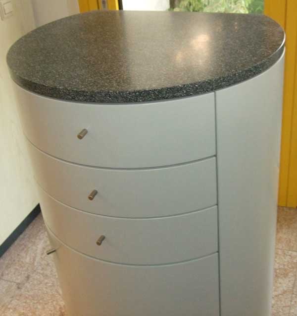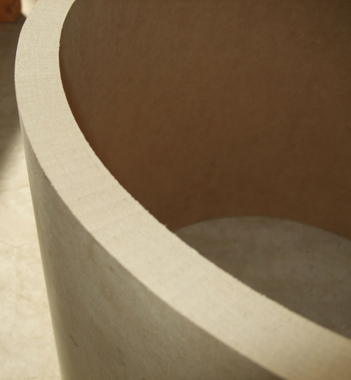 Das äußere und innere Deckfurnier läuft im Kreis (horizontal).Standard-Ausführung der Kreisprofile in MDF oder Buche.